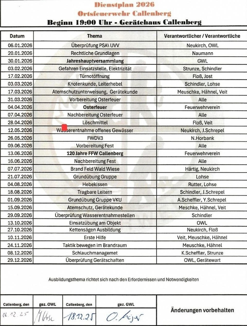 Die Ortsfeuerwehr Callenberg besteht aus 27 Aktiven Kameraden/- innen und 9 Kameraden/- innen der Alters- und Ehrenabteilung. Das neue Gerätehaus wurde im Juni 2012 in der Südstraße 17 a bezogen.